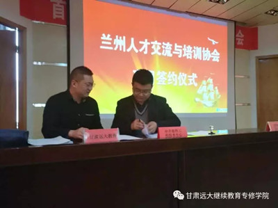 甘肅遠(yuǎn)大繼續(xù)教育專(zhuān)修學(xué)院與蘭州成志職業(yè)培訓(xùn)學(xué)校,蘭州中豐建科工程技術(shù)中心,甘肅學(xué)志教育科技有限公司等六家機(jī)構(gòu)成功簽約。