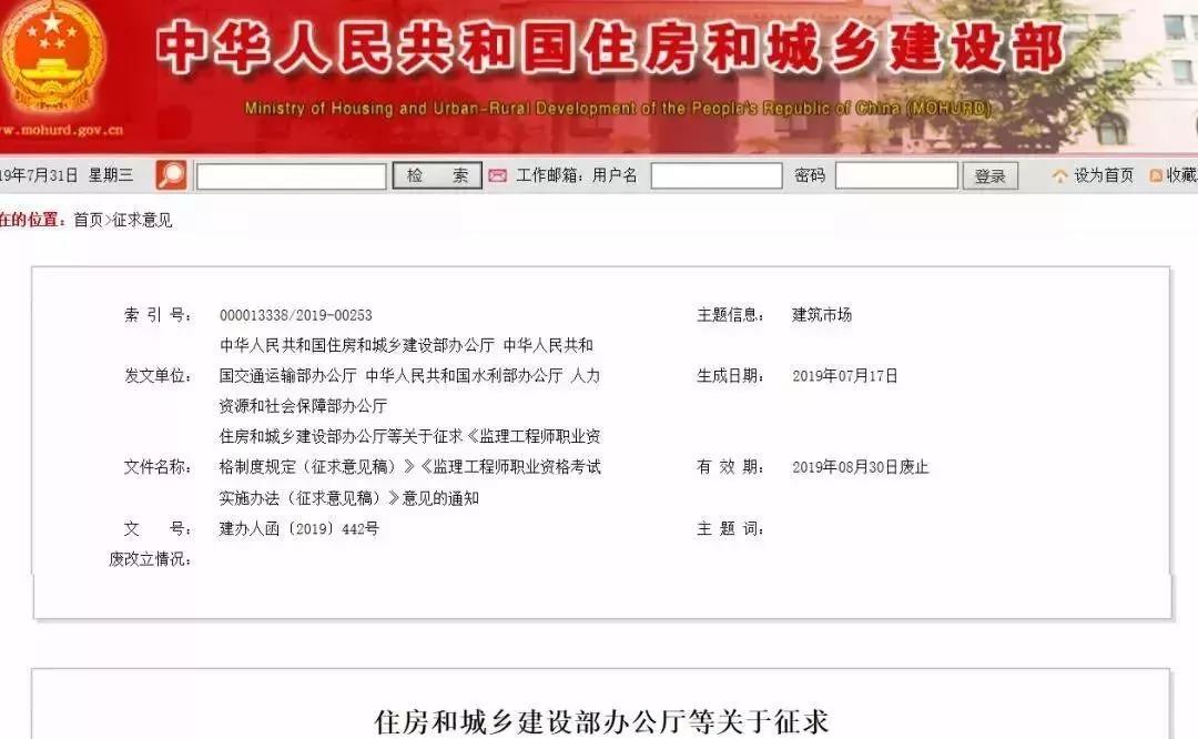近日,住房和城鄉(xiāng)建設(shè)部辦公廳、人力資源和社會(huì)保障部辦公廳、交通運(yùn)輸部辦公廳、水利部辦公廳聯(lián)合下發(fā)《監(jiān)理工程師職業(yè)資格制度規(guī)定(征求意見稿)》和《監(jiān)理工程師職業(yè)資格考試實(shí)施辦法(征求意見稿)》。