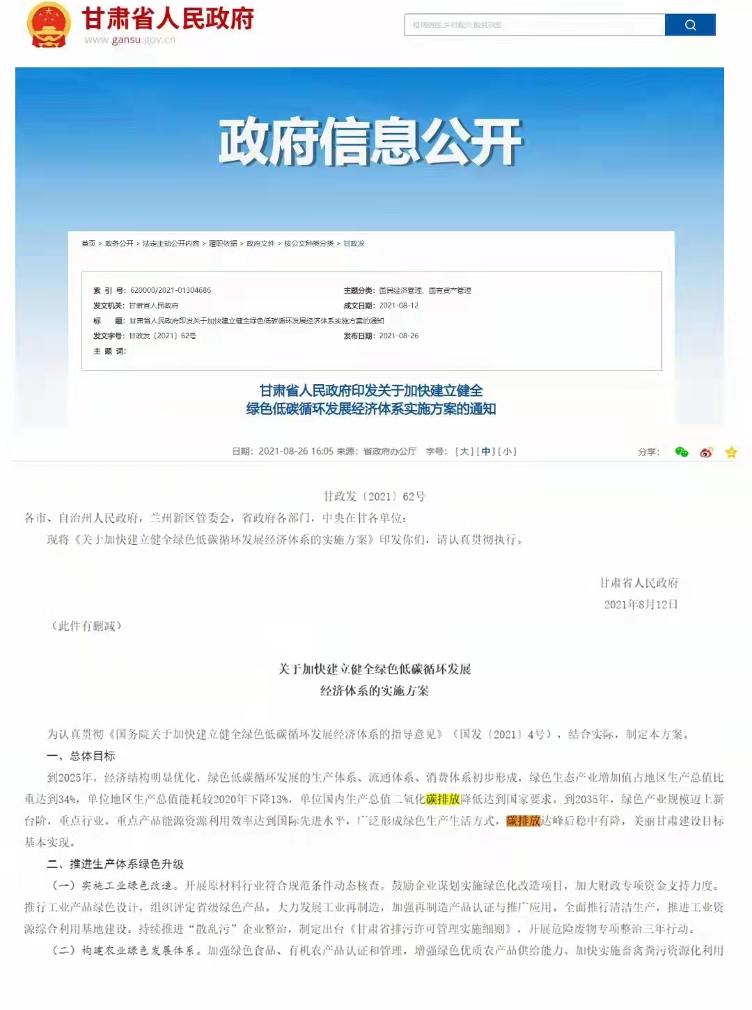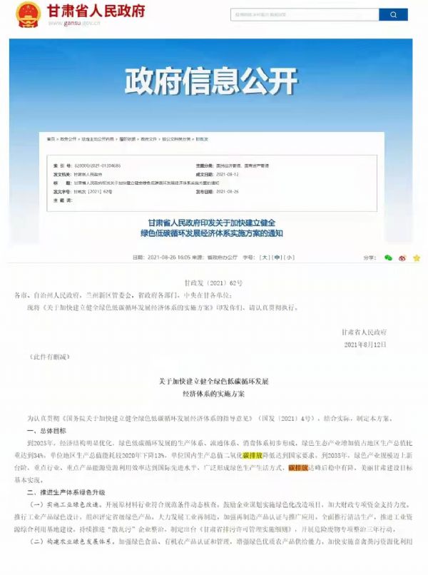 為認真貫徹《國務院關于加速建立健全綠色低碳循環發展經濟體系的指導意見》(國發【2021】4號),結合實際,制定了關于加快建立健全綠色低碳循環發展經濟體系的實施方案。