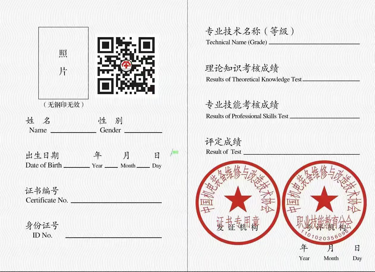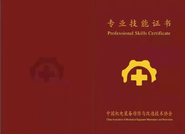 中國機電裝備維修與改造技術協會專業技能證書