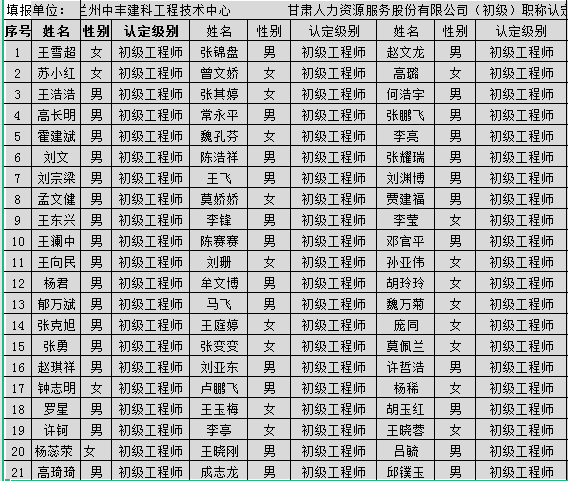 甘肅省人力資源市場助理工程師評審合格人員名單公示(第十批)045